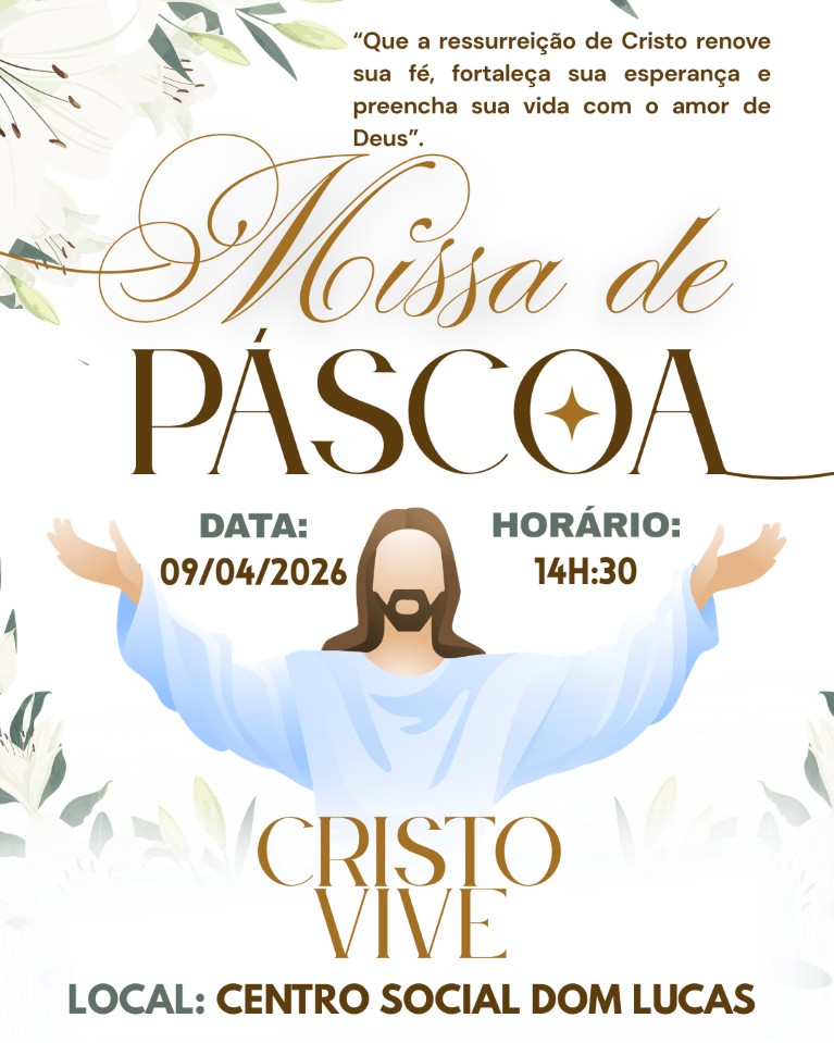“Que a luz da ressurreição nos inspire a abandonar as sombras do passado e trilhar caminhos de amor e compaixão. Páscoa é renovação, é enxergar a vida com os olhos da fé e do perdão. Que o sacrifício de Cristo nos motive a sermos melhores para nós mesmos e para o próximo.”